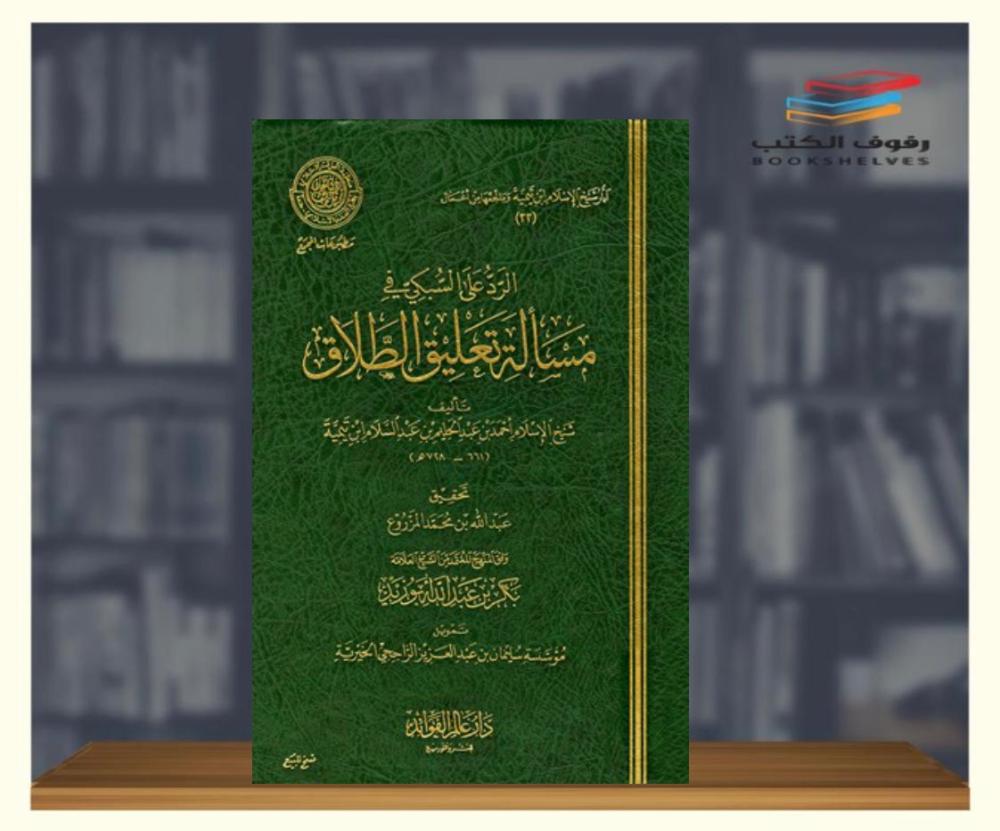 عنوان الكتاب :الرد على السبكي في مسألة تعليق الطلاق المولف : احمد ابن تميمة دار النشر: دار عالم الفوائد